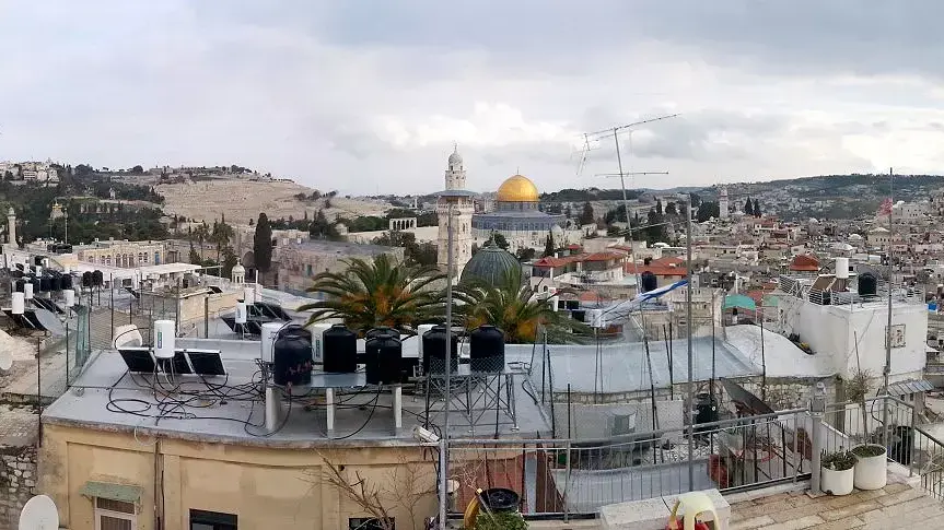 מי שייכנס בדלת הירוקה של הבניין, יוכל לטפס במעלה המדרגות ולהגיע עד לסופן. אז תיגלה לו התצפית היפה ביותר שיש על העיר העתיקה בירושלים - פנורמה של 360 מעלות של כל הבתים המפורסמים בעיר, החל מכנסיות, דרך מסגדים ובתי כנסת, מלונות, גגות של ישיבות ועד כיפת הסלע המוזהבת.