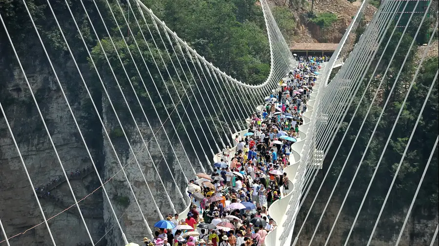 המבנה ההנדסי המרשים נחנך לציבור רשמית ביום שבת האחרון, וכבר אלפי תיירים נערמו בכניסה אליו כדי להיות הראשונים שיעברו עליו. בכל יום מורשים לחצות את הגשר רק 8,000 איש בלבד, אולם רק 600 איש בו זמנית. אלו שהצליחו לעשות זאת, מיד שלפו מצלמות ותיעדו את האירוע המרגש והמפחיד. מחיר ביקור בגשר: כ-80 שקלים.